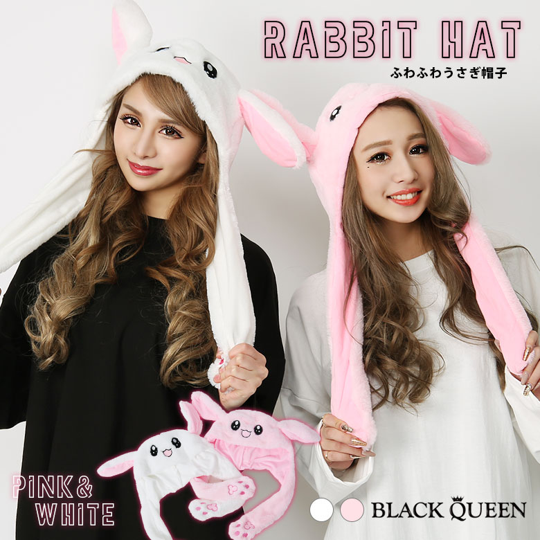 【3メール便 ギャル ファッション うさぎ 帽子 耳 動く レディース 雑貨 韓国 うさ耳 ふわふわ 白 ホワイト ピンク パーティーグッズ ギャル服 ブラッククイーン】ふわふわうさぎ帽子【gal c